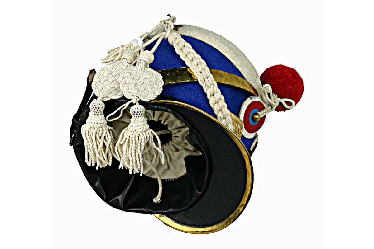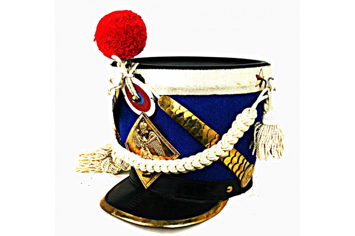 Leder-Tschako 1810 der kaiserlichen französischen Husaren Napoleon Bonaparte mit der Regimentsnummer 2 (Reproduktion)